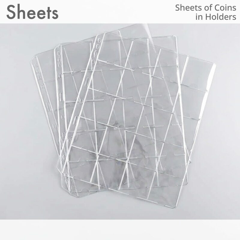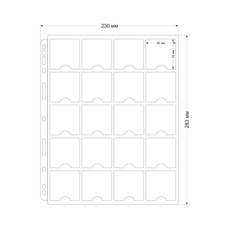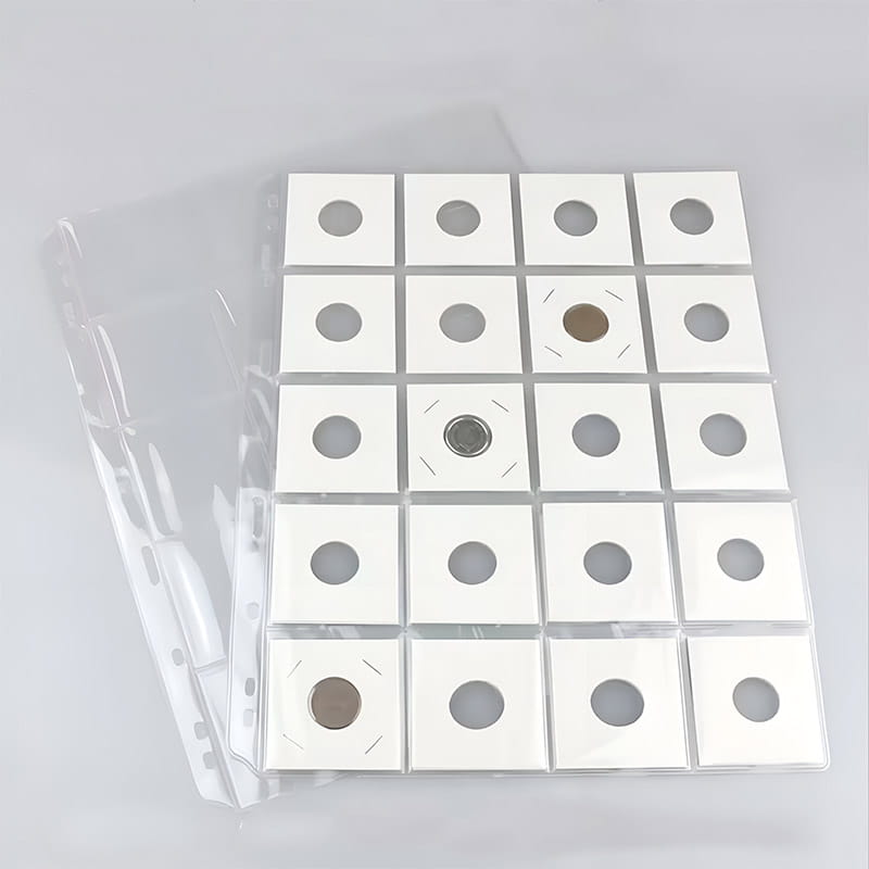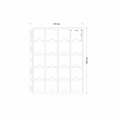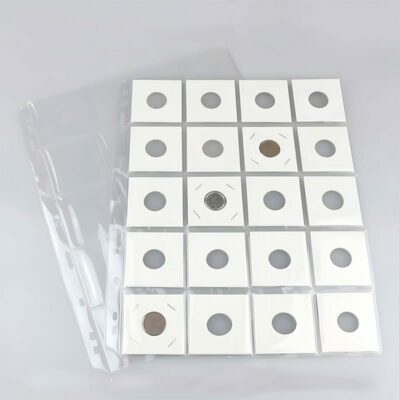 Coin sheets with 20 coin pockets in holders (A4 format, Grande standard). The sheets are compatible with our craft albums and all folders in this format, such as Leuchtturm GRANDE, Leitz, Kammer and others.